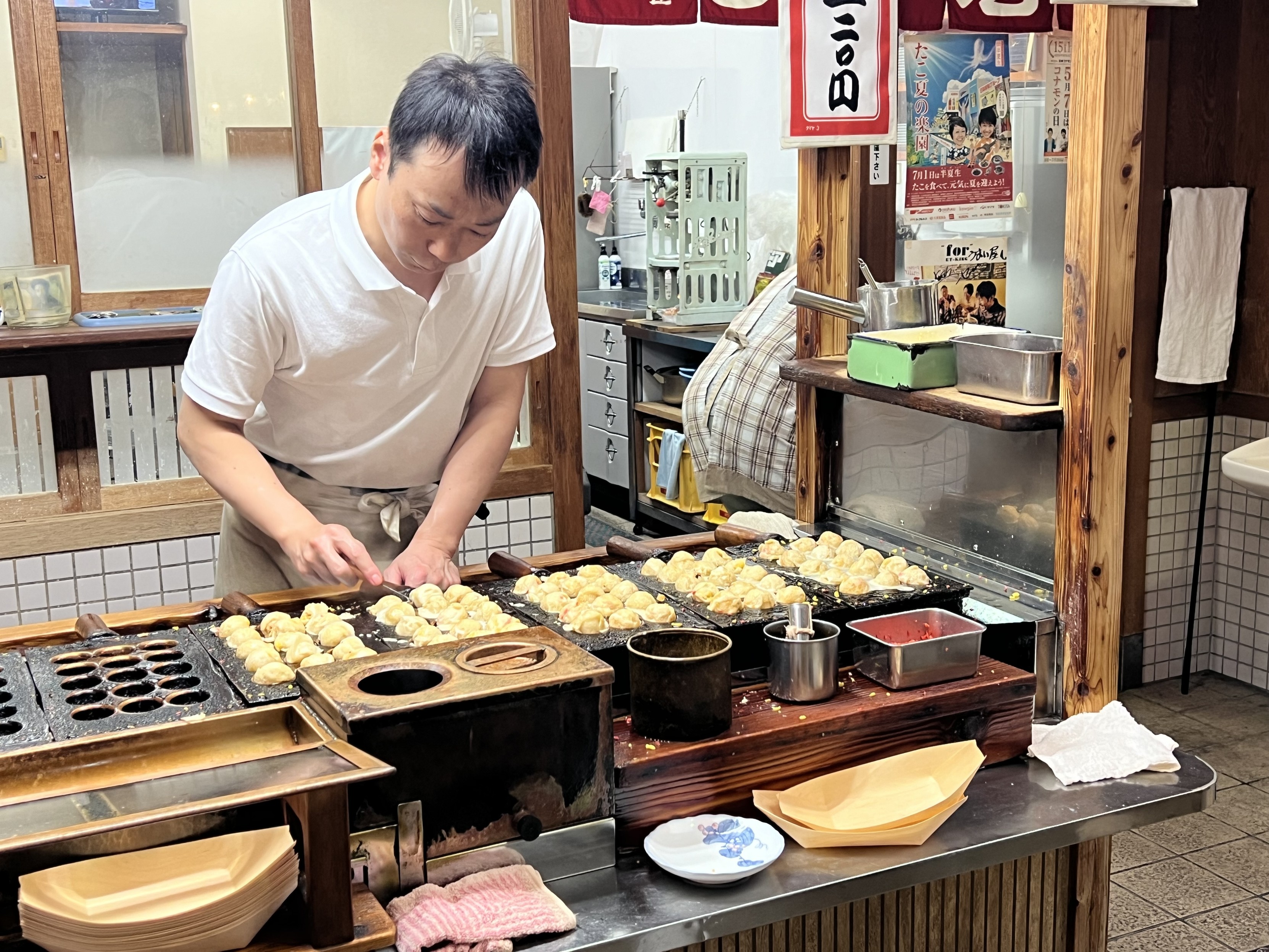 平时不是很爱吃章鱼烧(吃一两颗可以多了不要),去博物馆的途中在地图上看到这家评价很好,抱着“反正午饭没吃饱”的想法点了一个最小的(520日元八颗)进店坐了下来。口感挺好,馅没有太糊,于是不知不觉间都吃完了!不愧是名店。