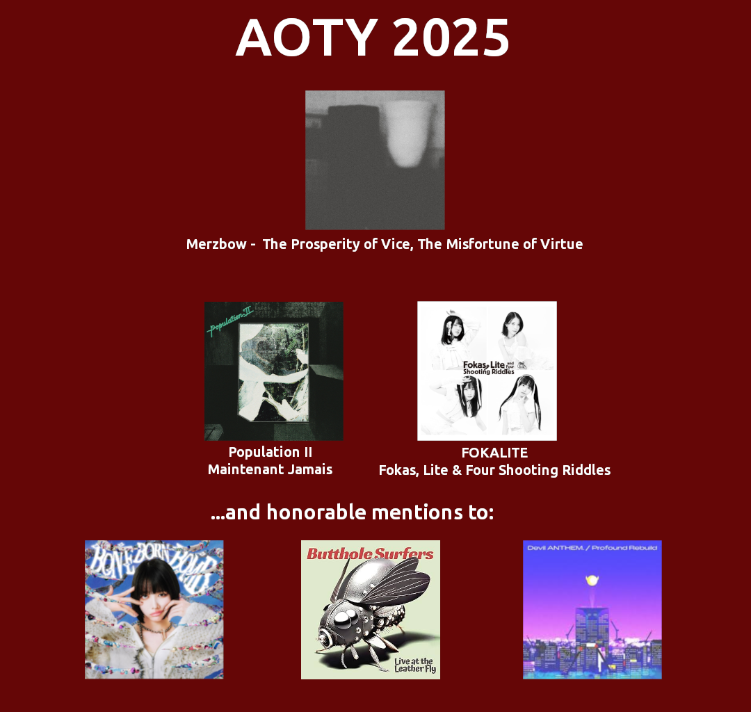 And here we have it: a list of 151 albums (plus a few artists/labels in general) that kept 64 of us going in 2025, complete with tasting notes plus other tidbits in footnotes! Some stats: