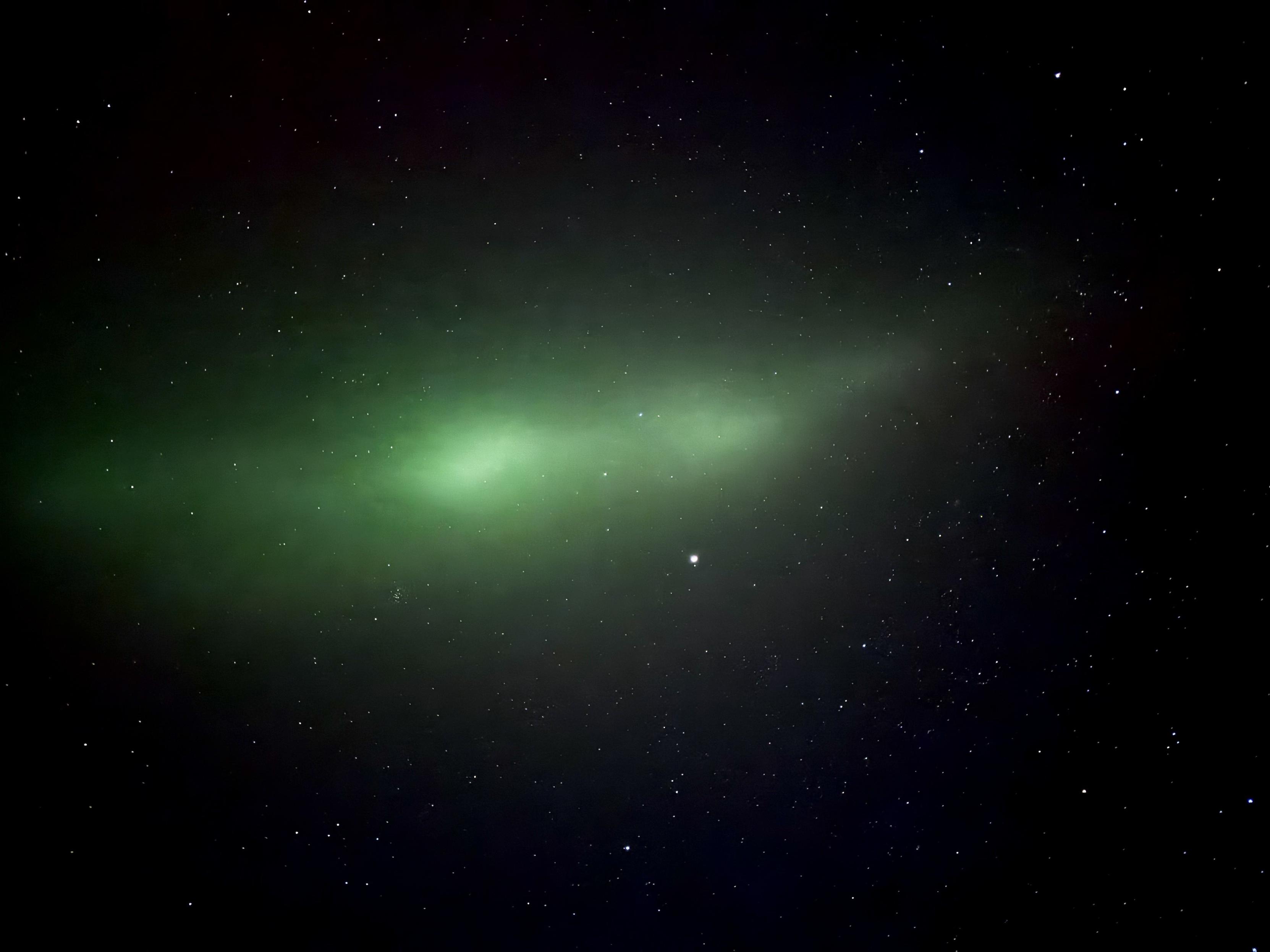 The #aurora right now is amazing. It's like a 360 degrees green and red fog.