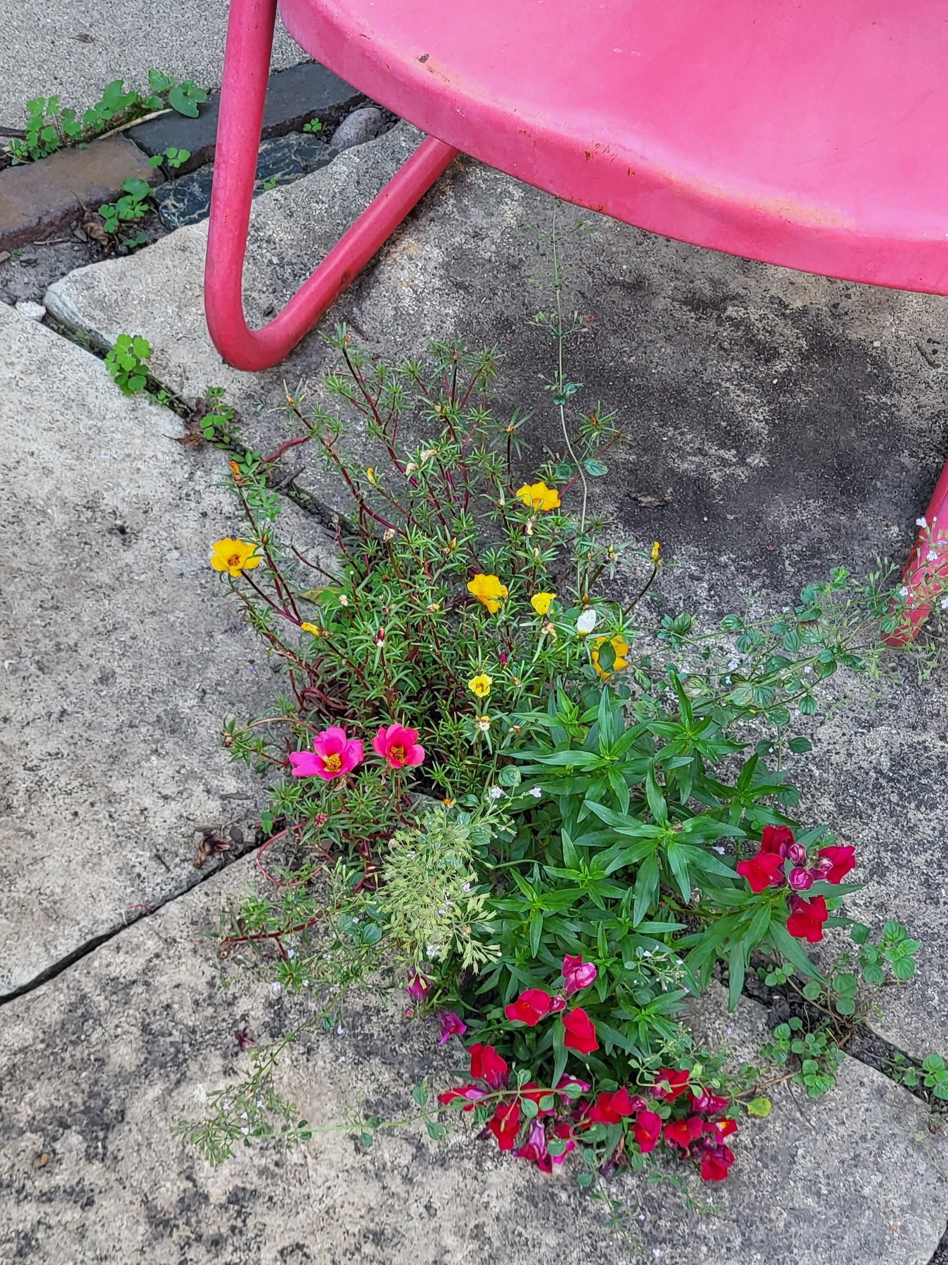 Nature abhors a vacuum. But sometimes She fills it with flowers. Honesty, I could not have done this on purpose if I tried.