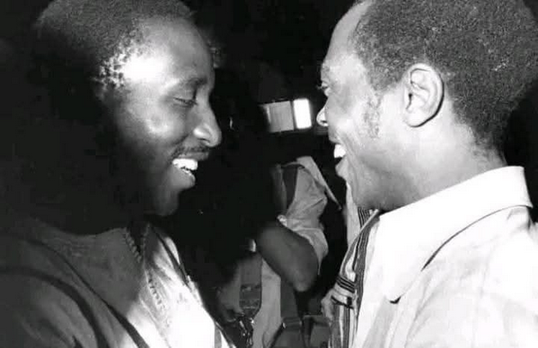 Burkina Faso’s President Thomas Sankara and Fela Kuti during the Panafrican Film and Television Festival (FESPACO) in Ouagadougou, Burkina Faso, in 1987.