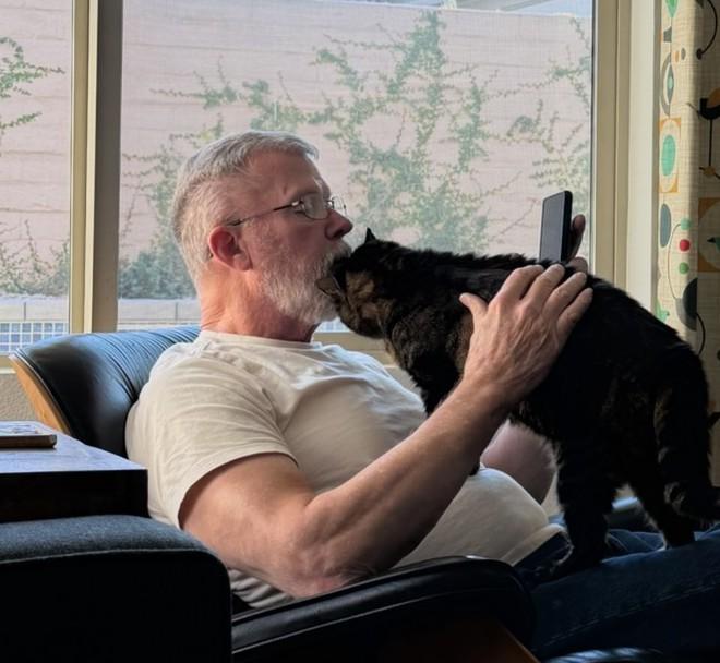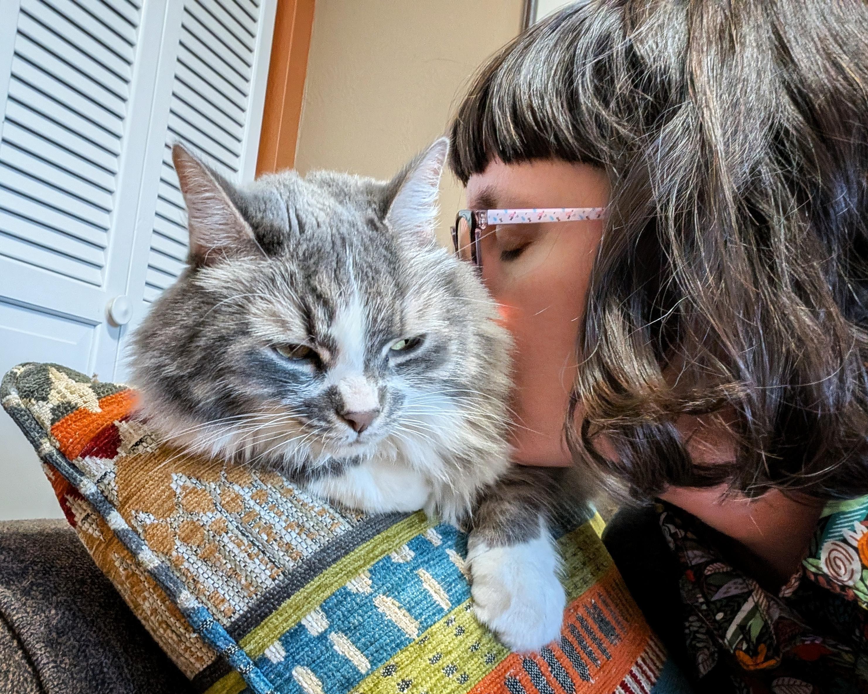 New profile photo. Visiting daughter Rachel caught me and Baby Kitty headbutting each other.