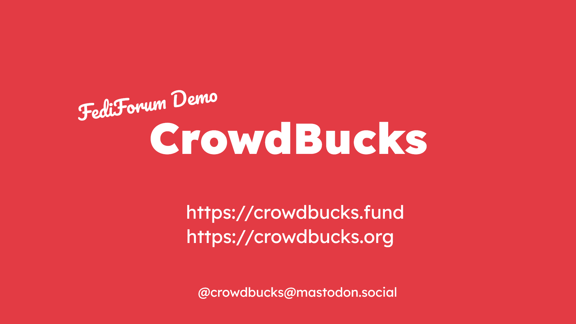 Here are my slides from my FediForum demo of CrowdBucks.