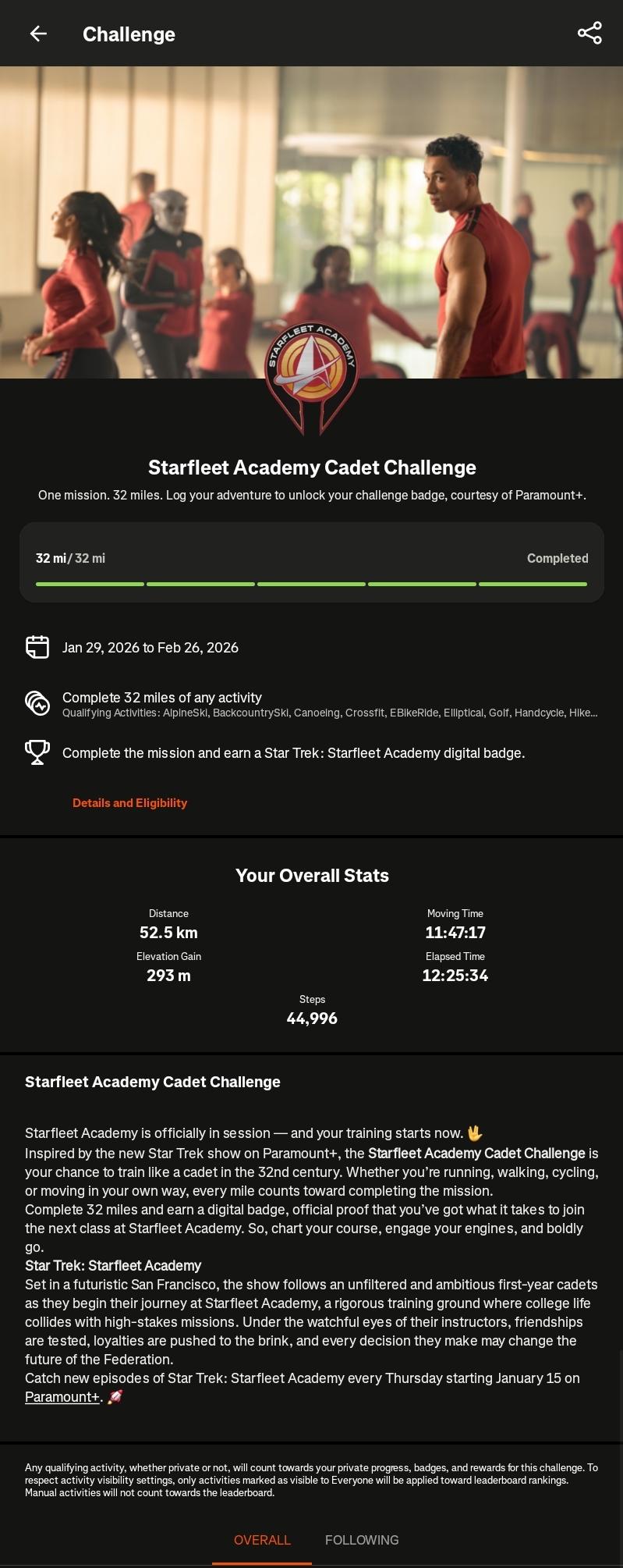 To all my fellow Star Trek: Starfleet Academy trekkers, there is a Strava challenge for us! 51.5 km / 32 miles