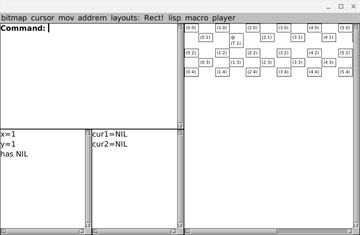 #lispGameJam #commonLisp #programming #devlog #commonLisp #mcclim #nicclim #gamedev #itchio in which I play with the make-my-own-level player activity. (It's unix-surrealism-jam not just NicCLIM because it is built around the unique unix-surrealism-jam controls not my preexisting NicCLIM's)