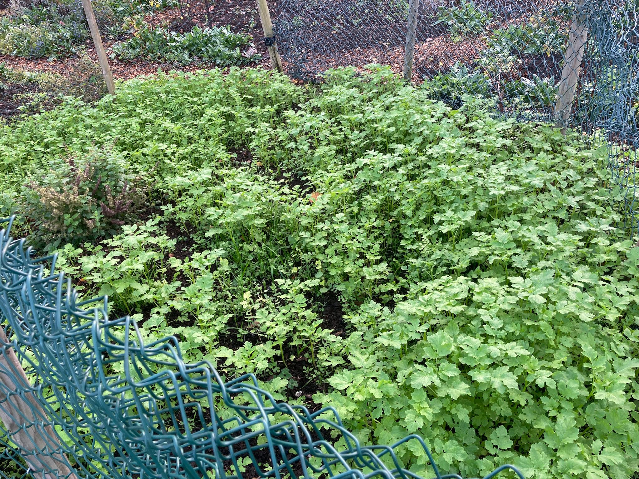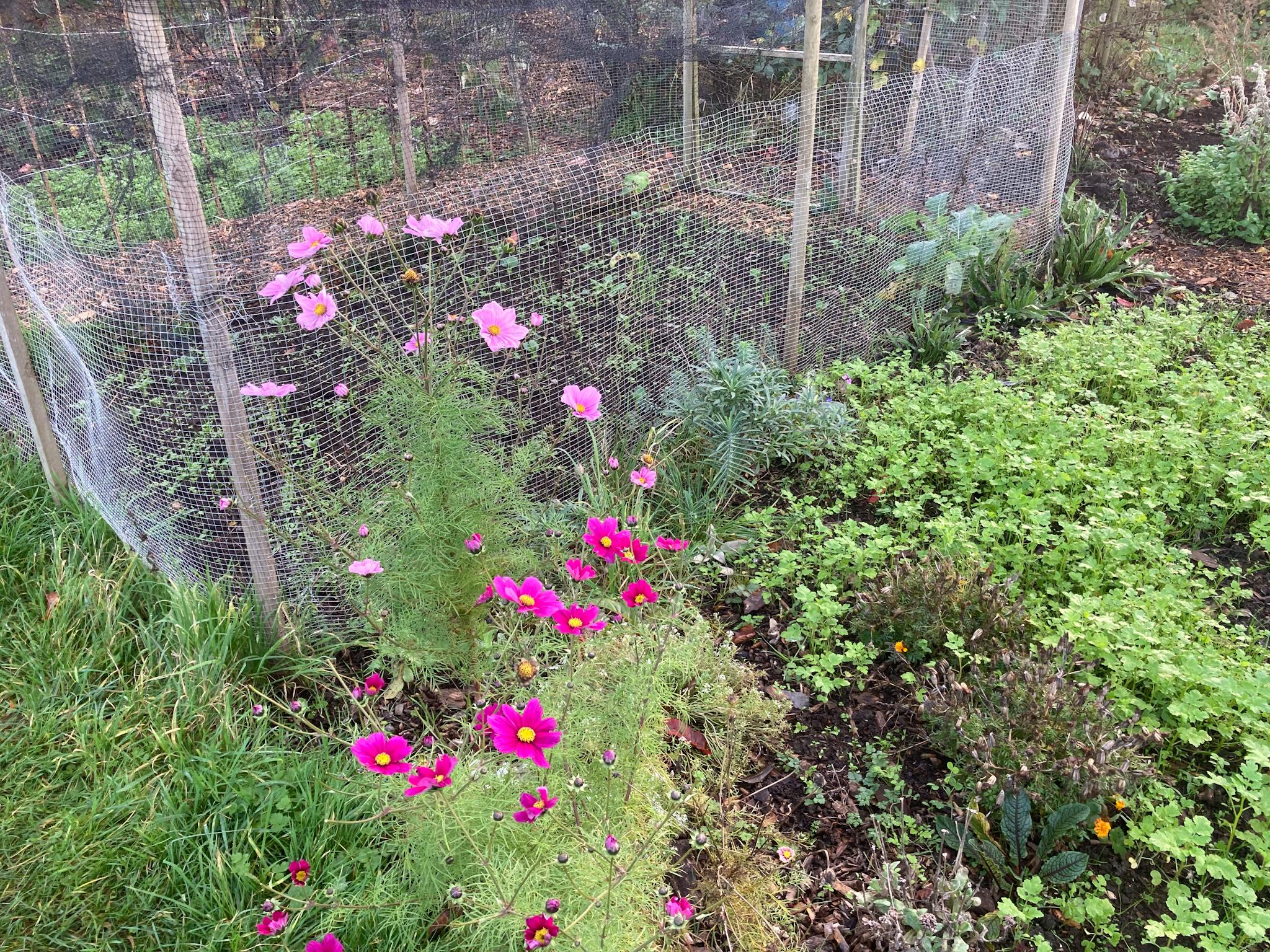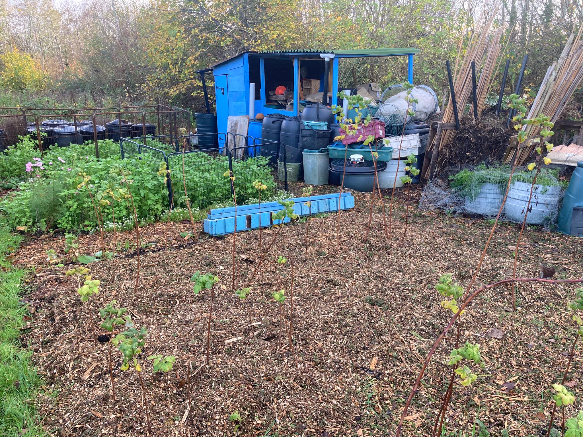 The raspberry beds have been given a layer of wood chip, the cosmos is still flowering and the green manures are growing nicely. #NoDig #Gardening #Allotment #GrowYourOwn #GreenManure #Mulch