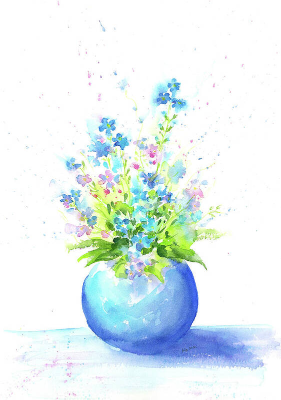 flower still life in a blue vase handmade watercolor painting - a special gift for someone you love!