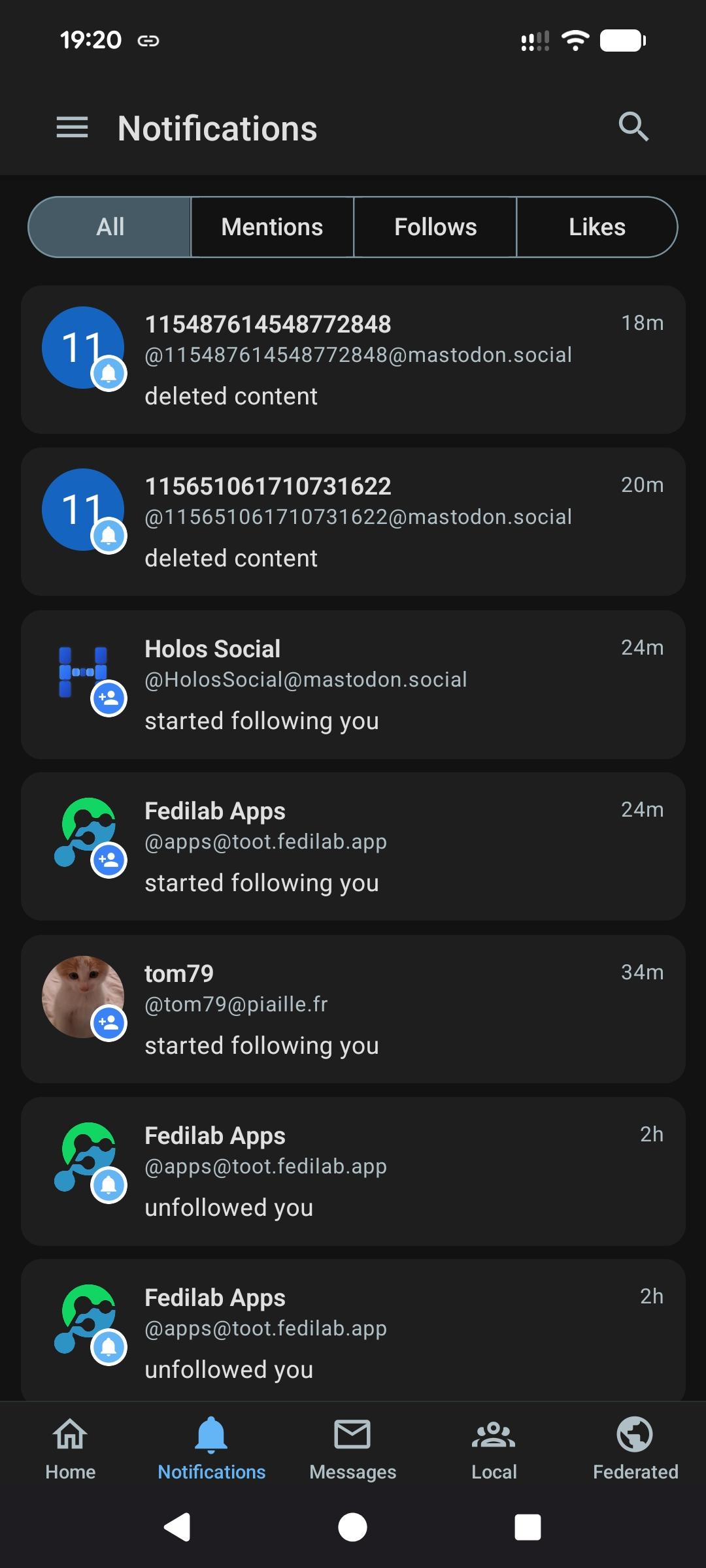 ActivityPub running on your phone. Your own server, your data stored locally. A relay handles your stable identity when you're offline.