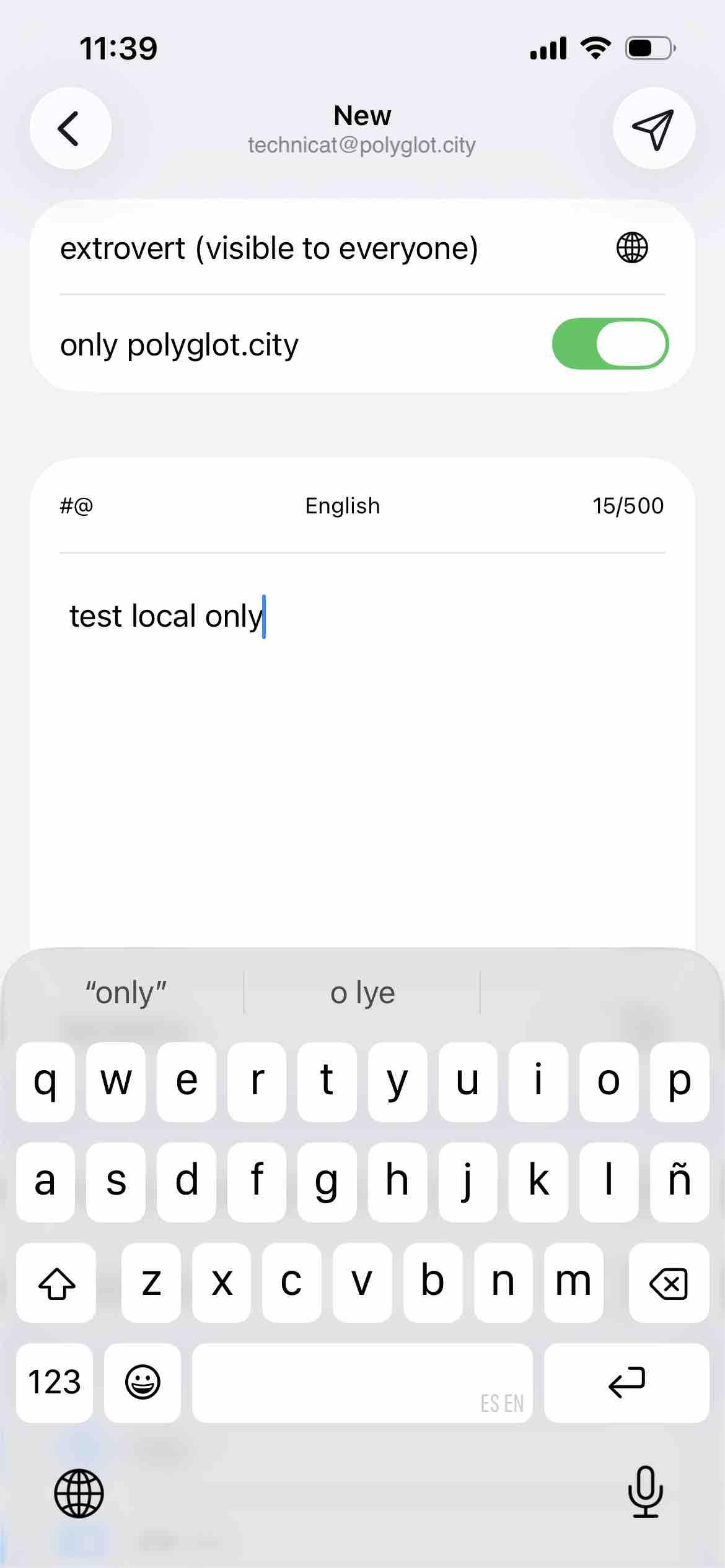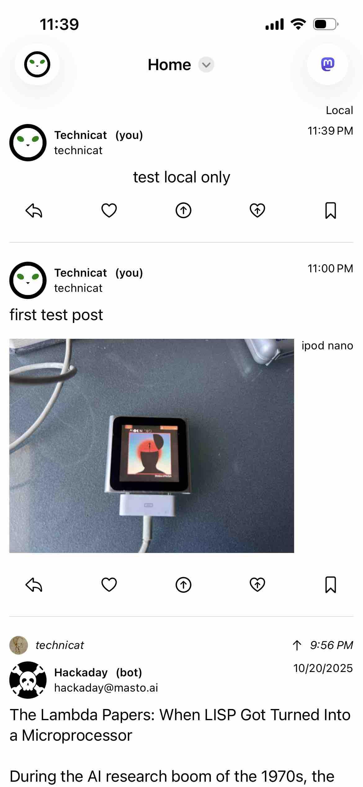 new #Hometown test account, checking that local only posts work