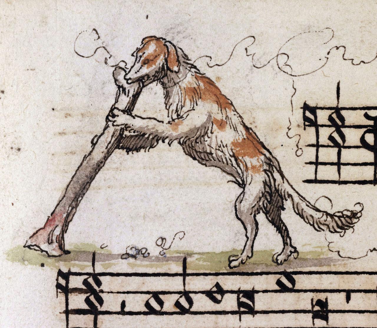 Hare with a crossbow. Roman d’Alexandre, Tournai ca. 1338-1344. Bodleian Library, MS. Bodl. 264, fol. 94v.