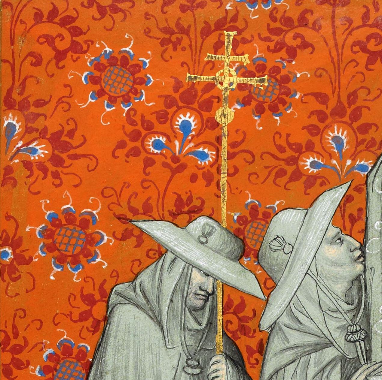 Cardinals. John Mandeville, Voyage d'outre mer, Bohemia ca. 1410-1420. BL, Add 24189, fol. 7v.