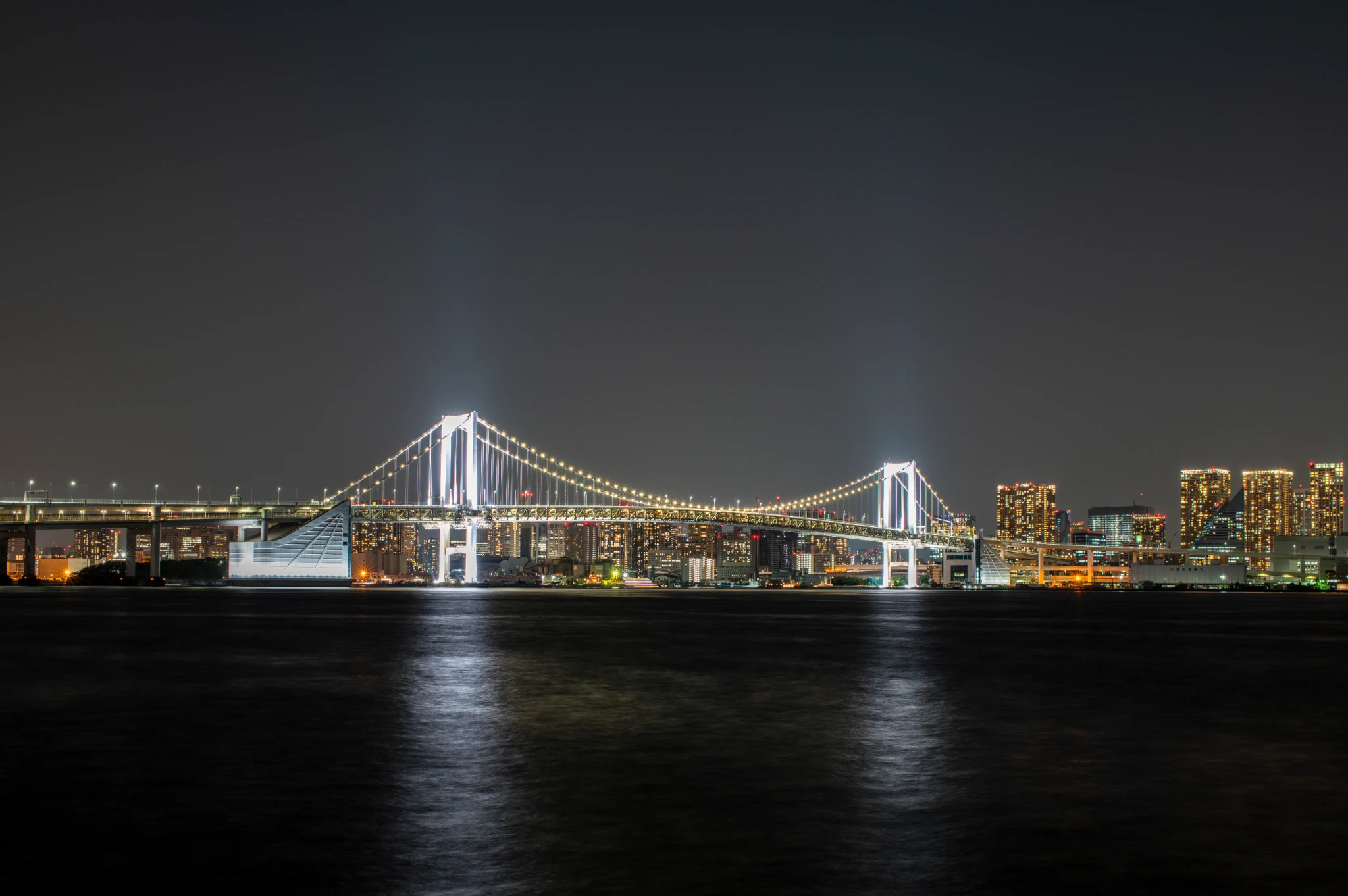 以前同じ場所から撮ったことがありますが、現在の機材で再撮影がしたいなと急に思い立って夜間ドライブで訪れたレインボーブリッジ。豊洲市場近くの公園からきれいに見えます #Misskey写真部