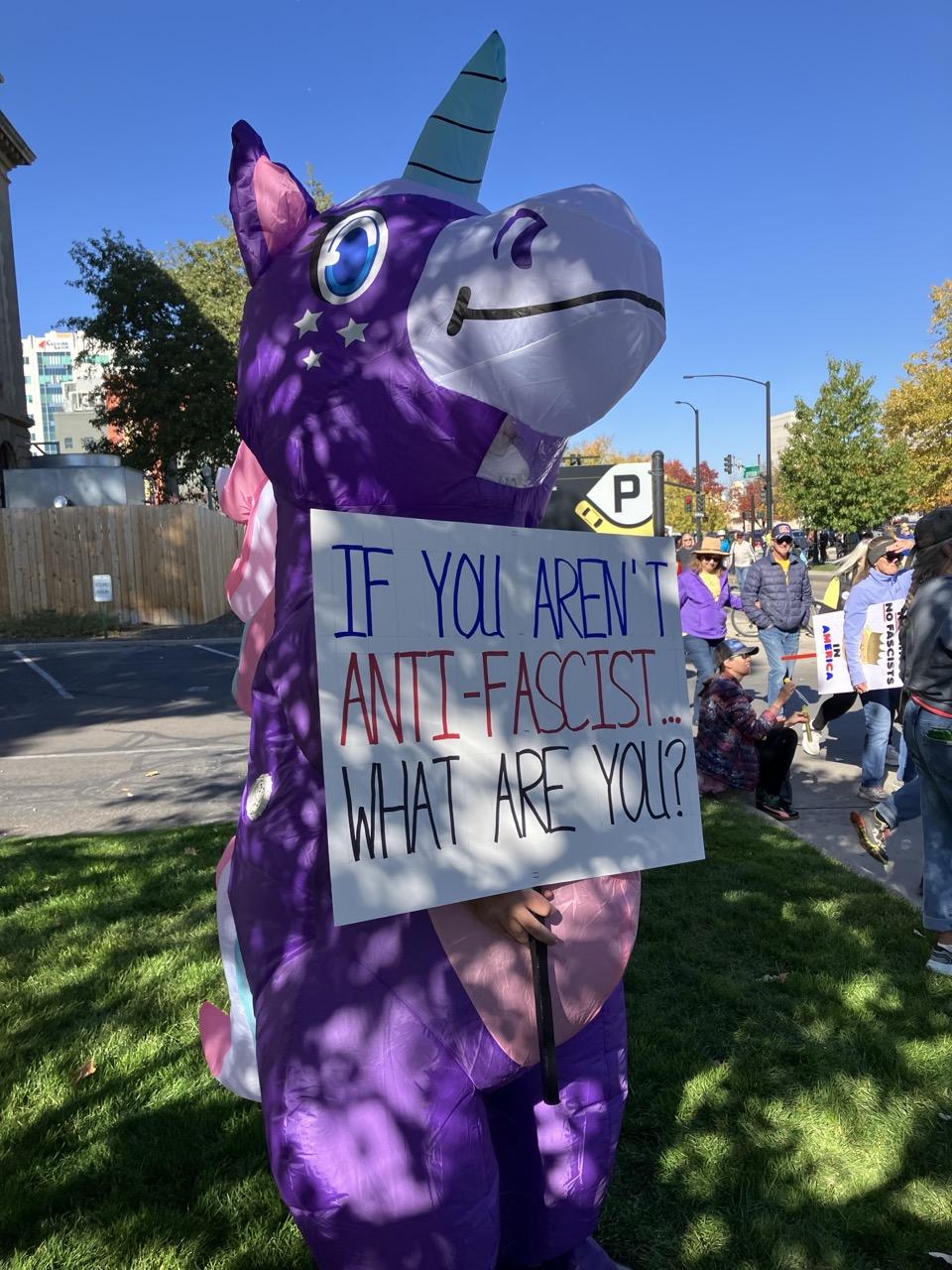 Trump had to spend many millions of dollars to get people to show up to his birthday—we all showed up to protest him for free.