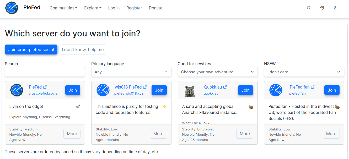 Out of the box PieFed has some pretty conservative settings, intended for small (less than 10 users) to medium (less than 200 active users) instances running on small servers where memory is constrained.