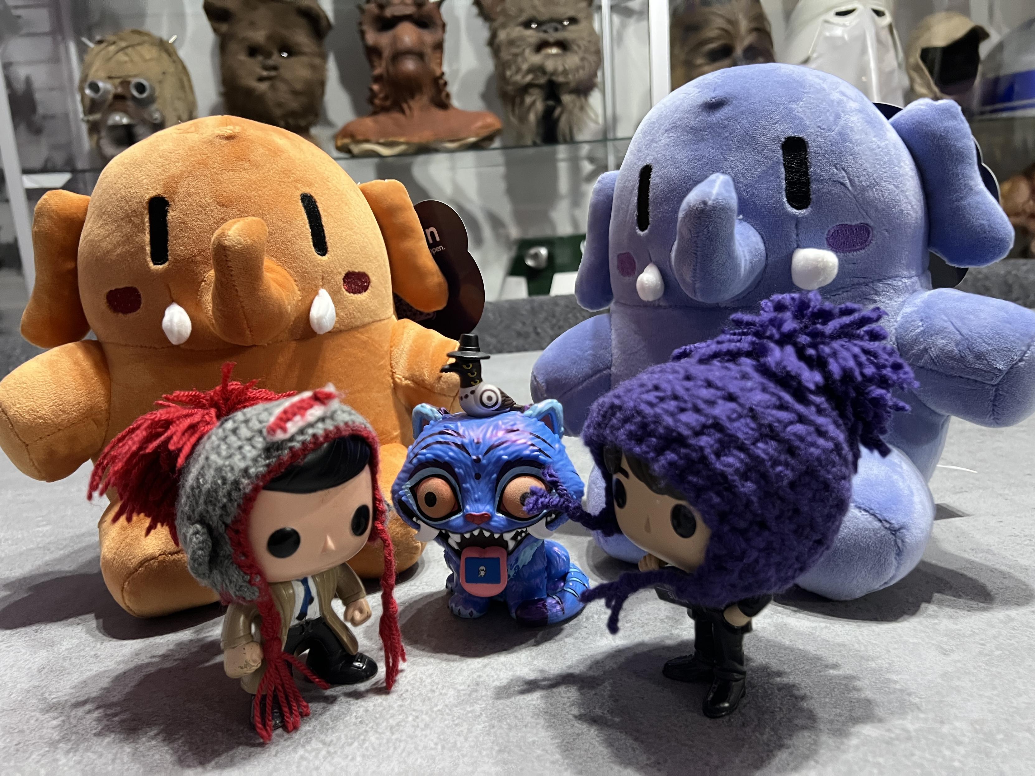 I noticed other folks on the tag were doing family portraits, so here's the whole gang. (SUGA was feeling outnumbered by pachyderms, so I added some other small friends.) #plushtodon