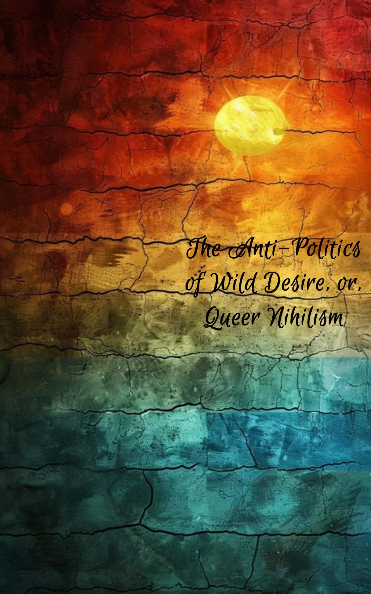 <p>QUEER NIHILISM</p><p>I have written a new essay (an hour of your time) which discusses "queer nihilism" or an anti-politics (that is, something against the politics of this world) of wild desire.</p><p>It is from a work in progress which is focusing on "the wild" as an alternative to our civilisations of death and oppression, a theorisation of anarchy.</p><p>It will interest those who have an interest in an alternative politics - and an alternative to politics - queer theory, nihilism, anarchism and all anti-civilisationalists.</p><p><a href="https://archive.org/details/qn_20260331/mode/2up" rel="nofollow" class="ellipsis" title="archive.org/details/qn_20260331/mode/2up"><span class="invisible">https://</span><span class="ellipsis">archive.org/details/qn_2026033</span><span class="invisible">1/mode/2up</span></a></p><p><a href="/tags/queer/" rel="tag">#queer</a> <a href="/tags/nihilism/" rel="tag">#nihilism</a> <a href="/tags/queertheory/" rel="tag">#queertheory</a> <a href="/tags/anarchism/" rel="tag">#anarchism</a> <a href="/tags/anarchy/" rel="tag">#anarchy</a> <a href="/tags/wild/" rel="tag">#wild</a> <a href="/tags/desire/" rel="tag">#desire</a> <a href="/tags/feral/" rel="tag">#feral</a> <a href="/tags/politics/" rel="tag">#politics</a> <a href="/tags/theory/" rel="tag">#theory</a> <a href="/tags/essay/" rel="tag">#essay</a> <a href="/tags/thought/" rel="tag">#thought</a> <a href="/tags/discussion/" rel="tag">#discussion</a></p>