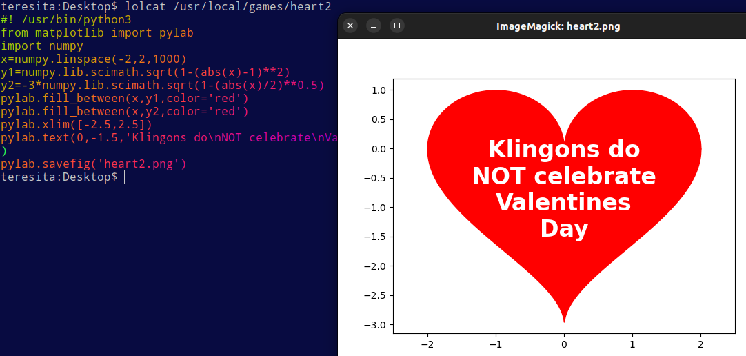 pylab.text(0,-1.5,'Klingons do\nNOT celebrate\nValentines\nDay',fontsize=24,fontweight='bold',color='white',horizontalalignment='center')