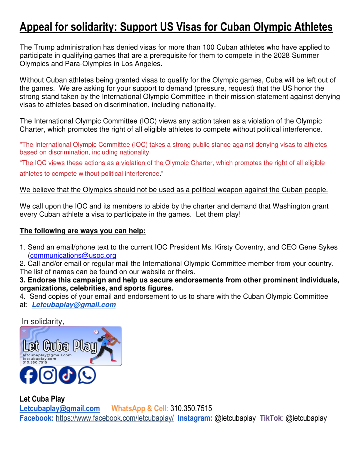 The #Trump administration in the #USA has refused to grant visas to Cuban athletes who need to compete in various events in the upcoming months in order to qualify for the 2028 #OlympicGames in #LosAngeles.