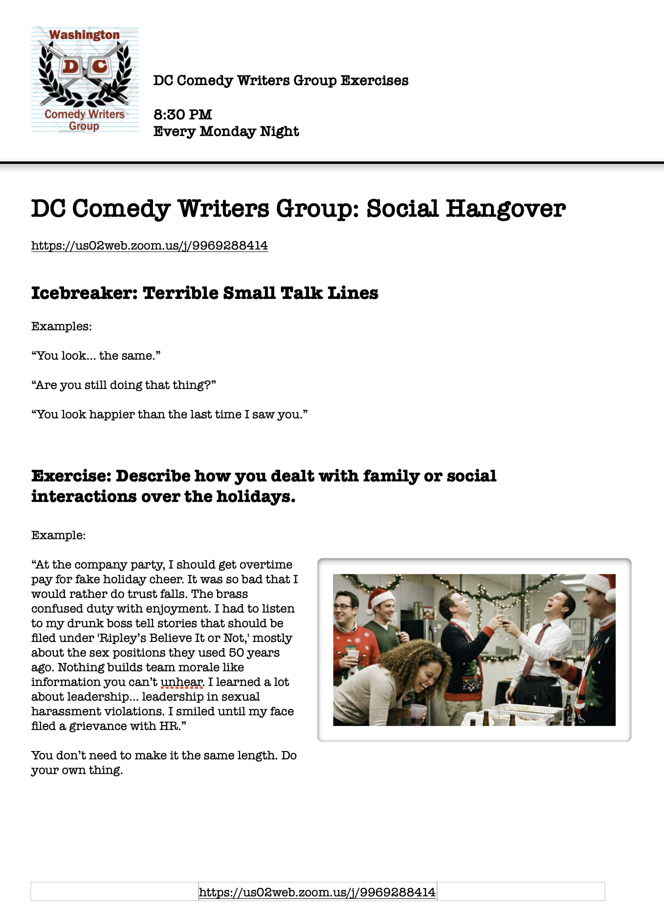 Shutdown could be over soon. Get off you futon and dance. Better write some jokes now. Exercises and the link are in the images. FB/Insta/threads @DCComedyWriters @dccomedywriters.bsky.social @DCComedyWriters