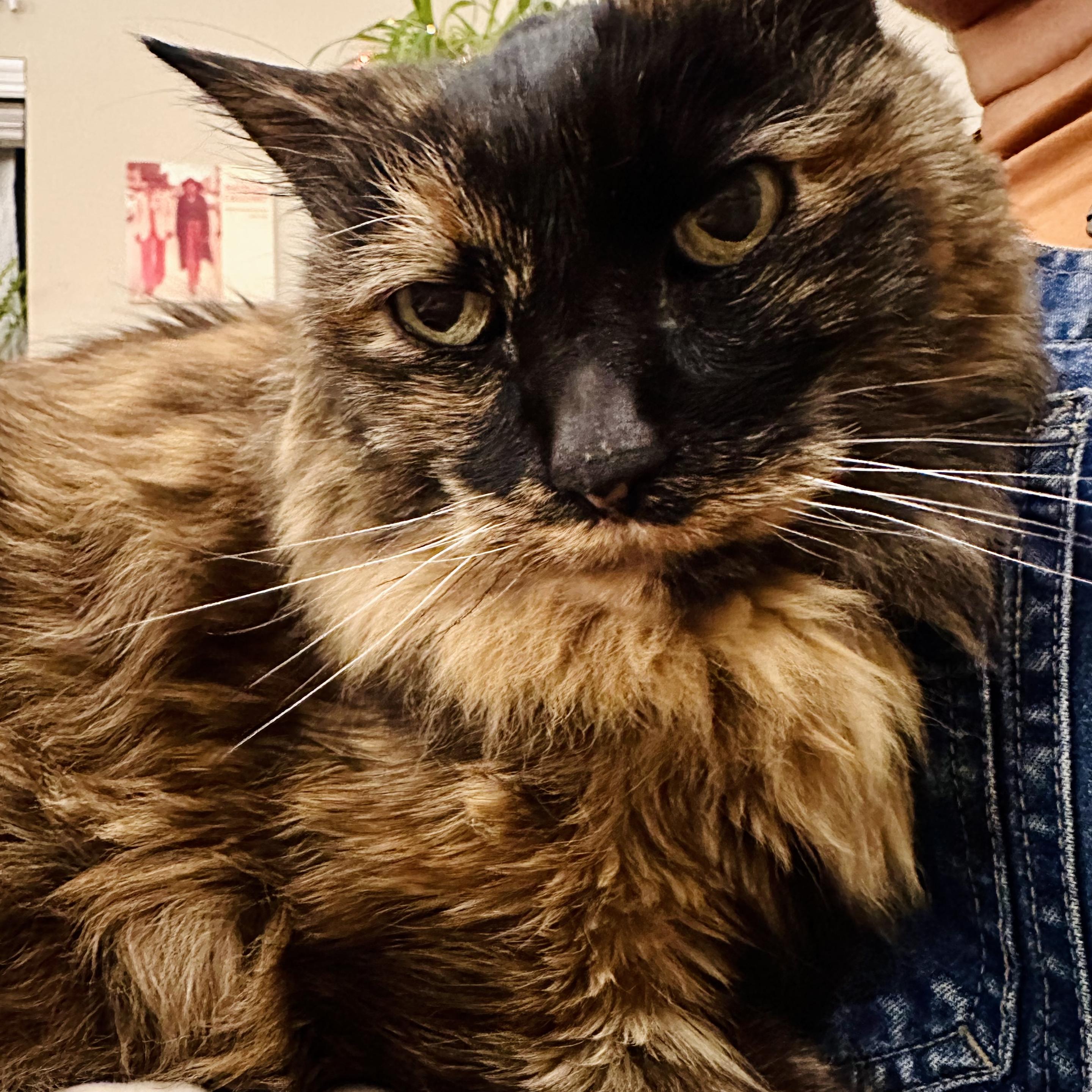 See if you can find me in this picture. My cat likes to put her whole body against my face. I always call her ‘big head’