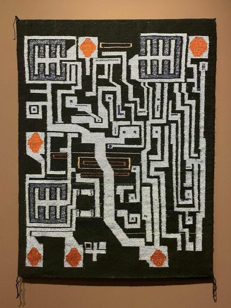 "Celebrated Navajo (Diné) artist Marilou Schultz recently completed a striking weaving. Although this rug may appear abstract, it is a representation of the wiring inside an integrated circuit. It shows the 555 timer, said at one point to be the world's most popular IC."